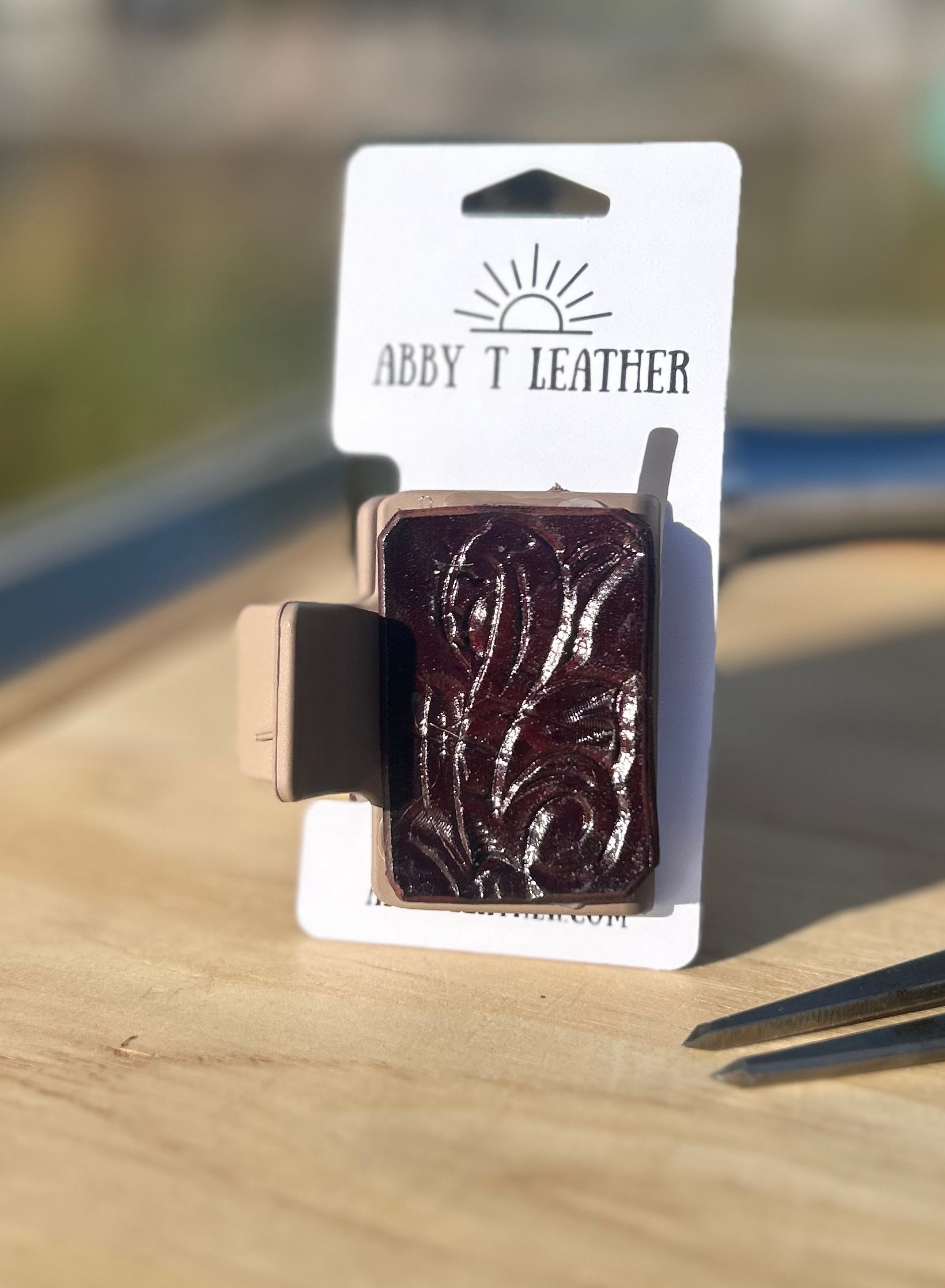 Handcrafted 2-inch leather hair clip made from premium Hermann Oak leather. Durable, elegant, and designed to add a timeless touch to any hairstyle.