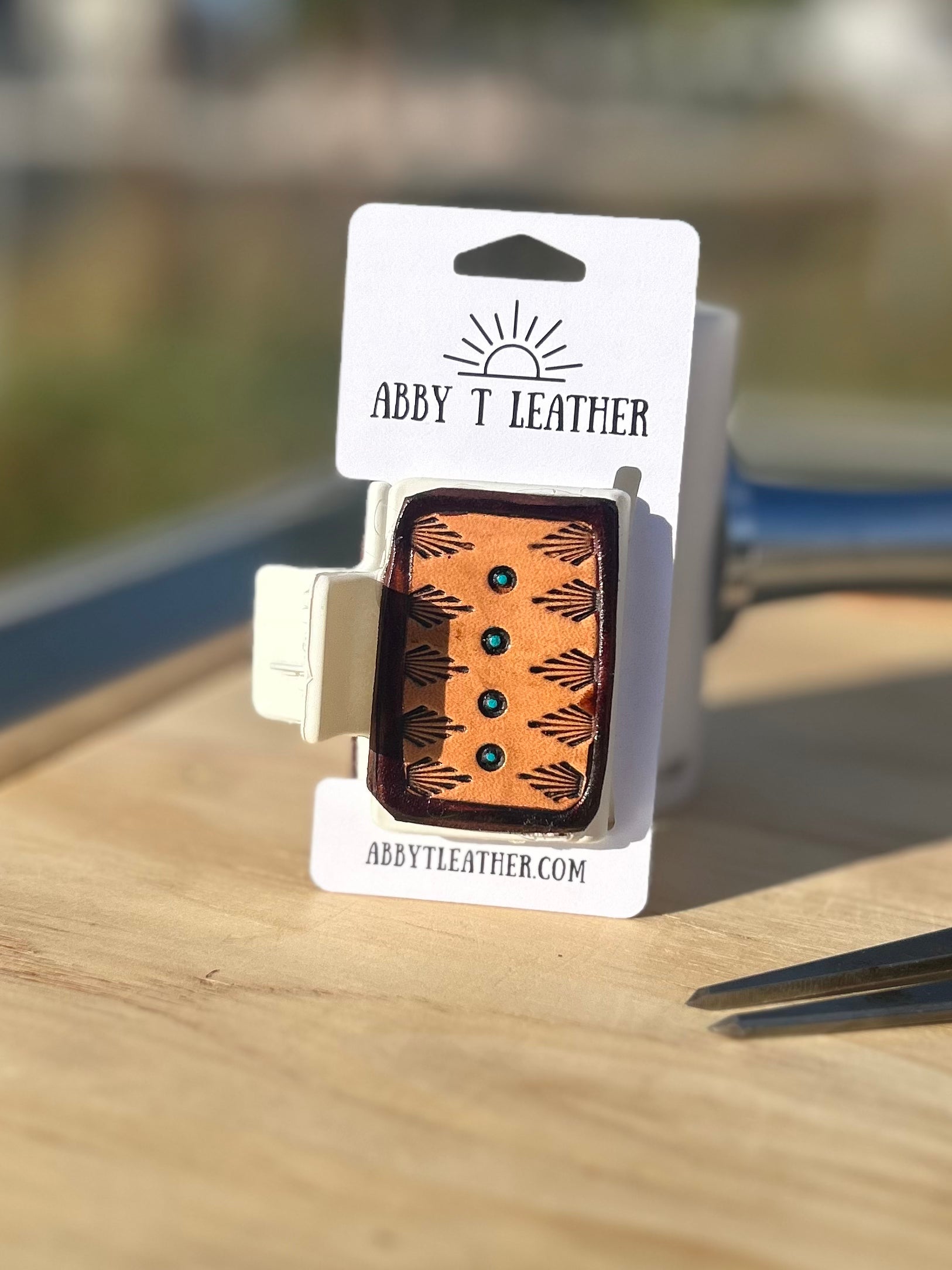 Handcrafted 2-inch leather hair clip made from premium Hermann Oak leather. Durable, elegant, and designed to add a timeless touch to any hairstyle.